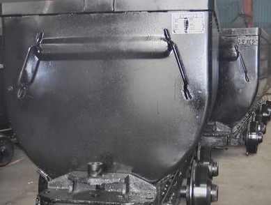 MGC3.3-9固定式矿车车箱与车架固定联接,须用翻车机将矿车翻转卸载。其基本组成为车箱、车架、缓冲器、联接器和行走机构。车架为一金属结构,能承受牵引力、制动力、矿车之间的碰撞力和钢轨冲击力缓冲器装在车架两端,用以缓和两车之间的冲击力。联接器是联接机车和矿车的部件,常用的有插销链环和回转链,大型矿车采用兼具缓冲器作用的自动车钩。行走机构是由4个车轮和2根轴组成的两个轮对。矿车和物料的总和超过20吨时,一般应增加轮对数目。对多于两个轮对的矿车,为便于通过弯道将两个轮对组成一个有转盘的小车,这种小车称为转向架。