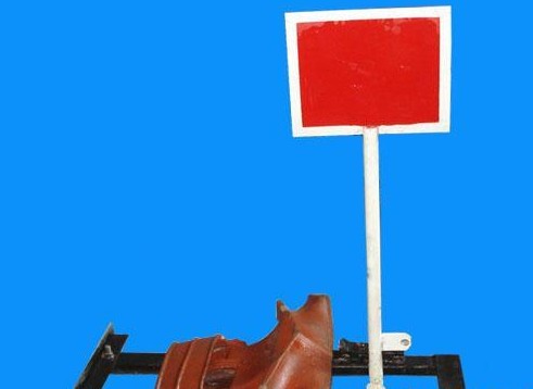 由反光灯牌、脱轨器轮体、脱轨器插销锁紧机构、轮挡板、脱轮器爬钉、道钉卡板、提把等构成。