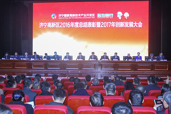 白书记代表高新区党工委、管委会全面总结了2016年工作并对新一年的创新发展工作进行全面安排部署。他说,2016年在高新区发展历程中平凡而又孕育希望,忙碌而又满载收获。荣获全市科学发展综合考核第一名,经济指标、民生指标均列第一,用实力证明了区域价值。2017年是高新区成立25周年,党工委、管委会决定把建设有全国影响力的圣地智谷作为战略目标,并从“智”入手拓展、实化、丰富内涵,初步谋划在智能终端制造、智慧城市、智库人才、智成文化、智理服务五个方面率先发力,力争走出一条具有济宁特色的创新驱动发展道路。会上,白书记还重点强调要以全省信息技术产业基地为机遇,大力扶持全区信息产业企业的发展规模,积极构建信息产业生态圈,优化“一区多园”布局,推进电商平台开放运营,针对出台更多优惠政策,强化社会服务支持,吸引更多人才、技术、资本等加速聚集,走出一条以信息技术、信息产业为带动的创新发展之路,加速“圣地智谷”的迅速崛起!